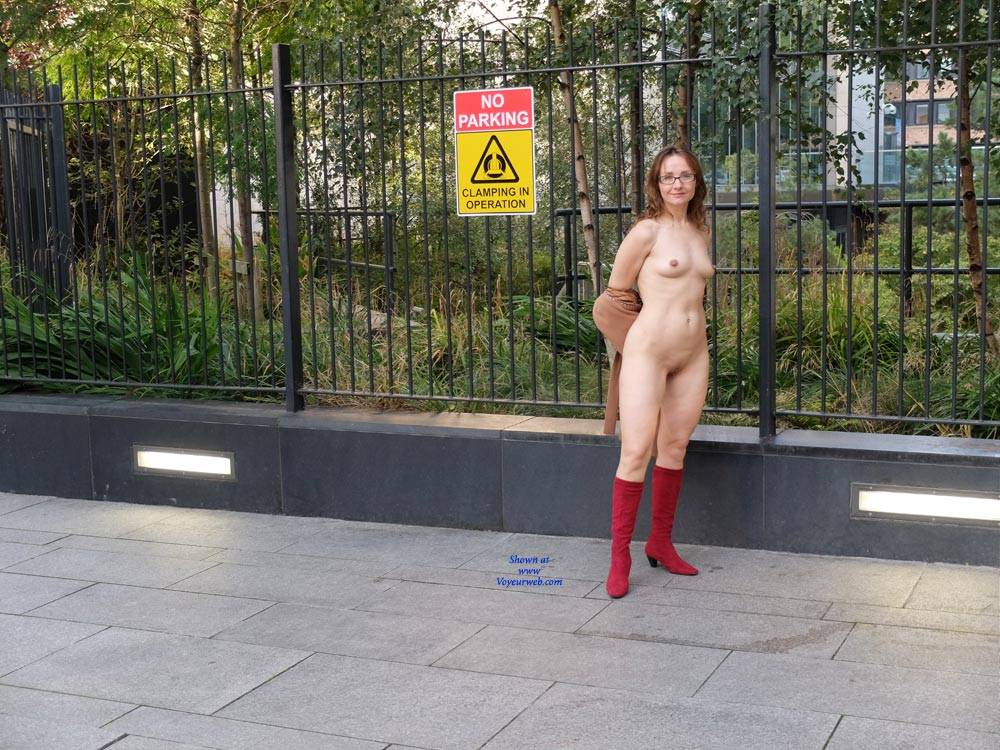 Brunette Public Exhibitionist Flashing Outdoors Public Place Shaved